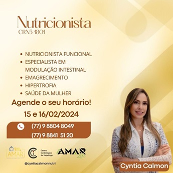 A CLÍNICA AMAR LIFE TRAZ PARA ITAPETINGA E REGIÃO A ESPECIALISTA EM NUTRIÇÃO Dra. CYNTIA CALMON