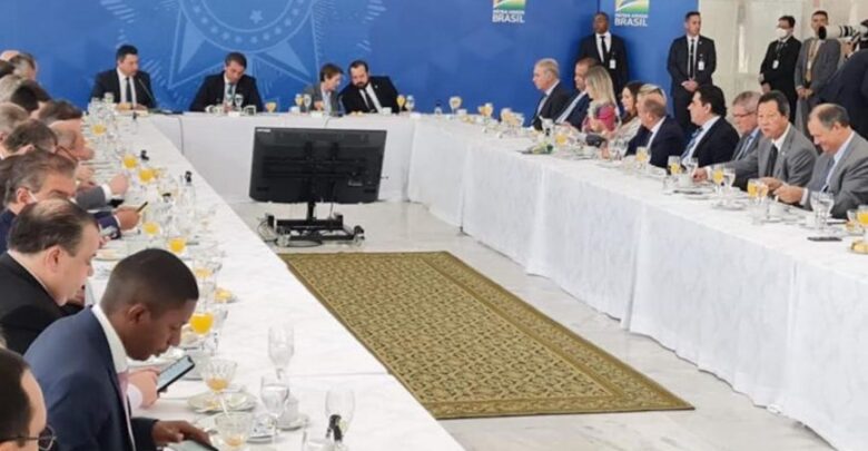O presidente Jair Bolsonaro e ministros participaram nesta 4ª feira de reunião com integrantes