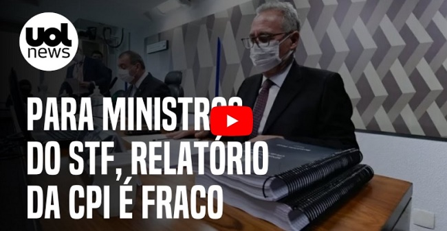 Ministros do STF (Supremo Tribunal Federal) consideraram “fraco” o relatório final da CPI da Covid. Nos bastidores da Corte, o comentário é de que não há elementos suficientes para comprovar o cometimento de crimes por parte do presidente Jair Bolsonaro. Um dos ministros ouvidos pela coluna em caráter reservado afirmou que seria difícil o relatório resultar em punição ao presidente. Segundo esse ministro, o crime imputado pela CPI a Bolsonaro com indícios mais consistentes é o de omissão, pela demora no início da vacinação contra covid no país. Ainda assim, seria necessário comprovar que, na comparação com o cenário internacional, o Brasil ficou mesmo para trás na imunização da po… – Veja mais em https://noticias.uol.com.br/colunas/carolina-brigido/2021/10/27/ministros-stf-relatorio-cpi-fraco-dificil-punir-bolsonaro.htm?cmpid=copiaecola