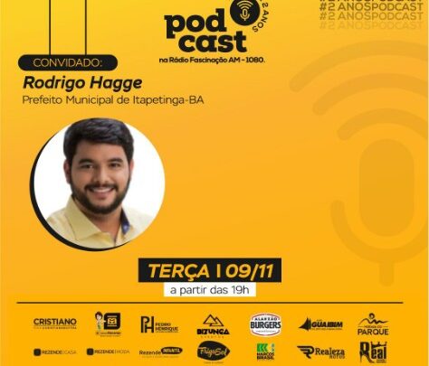 O prefeito de Itapetinga Rodrigo Hagge (MDB) será o entrevistado do Podcast 1080 na noite desta terça-feira (8).