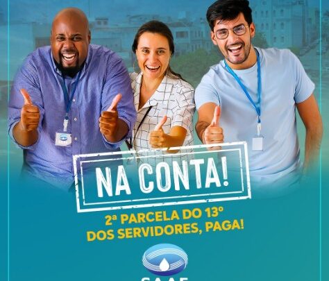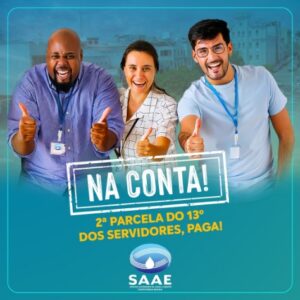 Segunda parcela do 13° Salário dos colaboradores do SAAE, na conta hoje!