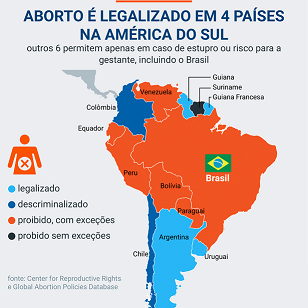 Na América Latina, a prática é legal ou descriminalizada em 6 países da região, segundo dados do Center for Reproductive Rights (Centro de Direitos Reprodutivos) e do Global Abortion Policies Database, banco de dados da OMS (Organização Mundial da Saúde).