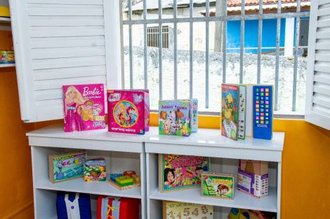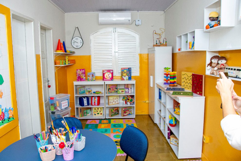 Brinquedos educativos que desenvolvem a cognição e coordenação motora, equipamentos de informática, mobiliários adaptados, materiais didáticos e de acessibilidade formam um espaço para um atendimento educacional especializado.