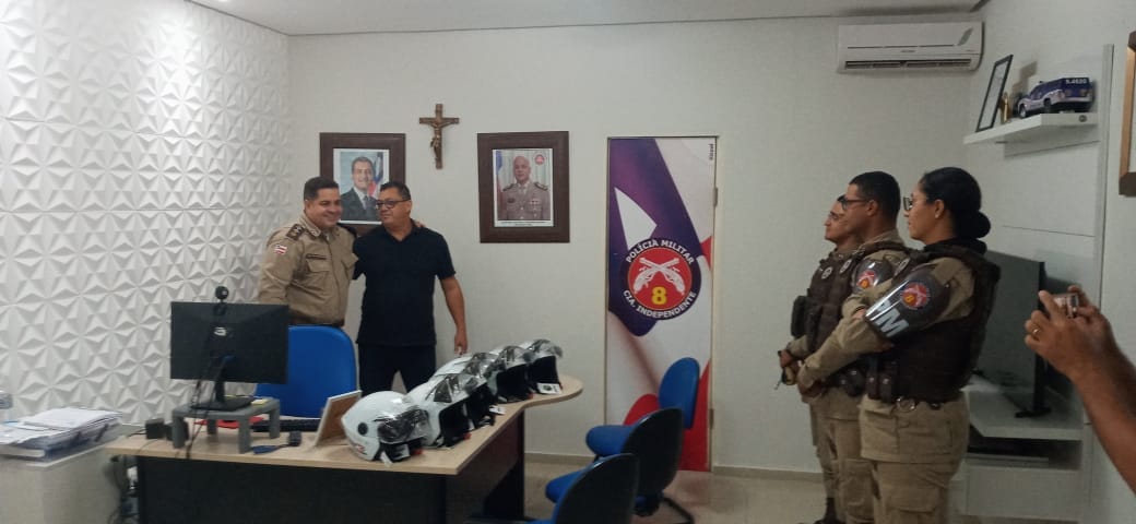 A entrega dos capacetes foi feita pelo presidente ao comandante Major Vandilson Araújo.