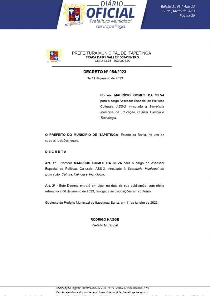 ITAPETINGA: MAURÍCIO GOHMES ASSUME SETOR DE CULTURA DO MUNICÍPIO