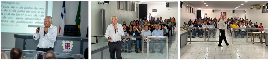 No auditório da Câmara de Vereadores, o professor e economista Orlando Gomes, falou sobre a nova lei que chegou para implementar diversas mudanças no processo licitatório e tornar a compra ou contratação de bens e serviços mais rápida e eficiente. O curso deu continuidade ao processo de capacitação iniciado em junho de 2022, com um evento realizado de forma online. “Esse é um processo contínuo de aperfeiçoamento do serviço público, através da preparação dos nossos servidores”, explicou o secretário de administração, Carlito Ferraz.
