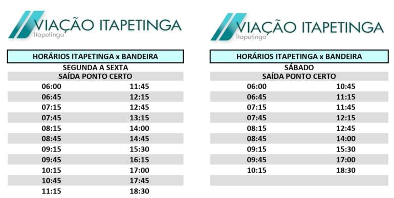 Uma das linhas que ganharam incremento em seu roteiro foi a do Bandeira do Colônia. As viagens com saída de Itapetinga para aquele distrito, e do Bandeira para Itapetinga, estão disponíveis todos os dias, com horários especiais aos domingos. Confira abaixo.