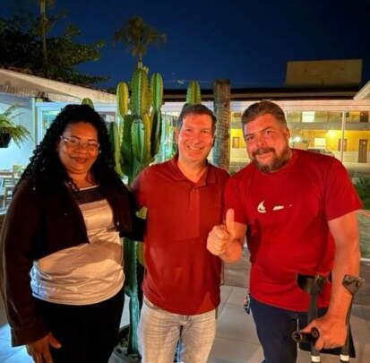 Durante o encontro, Sobral dialogou com Paulo Maurício, presidente municipal do MDB, e com os representantes da área da saúde, Sílvio e Carlos Sílvio, debatendo propostas e estratégias voltadas ao desenvolvimento da cidade e de toda a região Sudoeste.