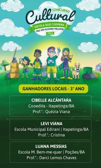 12 trabalhos artísticos foram os vencedores, distribuídos entre os quatro municípios, sendo que Itapetinga ficou com 50% da premiação, com seis medalhas, sendo os alunos vencedores das escolas Cooedita, Colégio Batista e São José (pela da rede privada de ensino) e as escolas Edirani Pacífico Góes e Sizaltina Fernandes (pela rede Municipal).