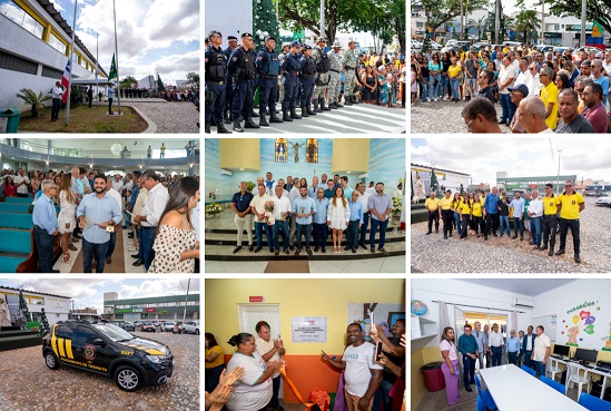 A programação começou às 8h, no Paço Municipal, com o hasteamento das bandeiras e o entoar do hino nacional e municipal, além da entrega de mais uma viatura para auxiliar no trabalho da Comutran. Durante a cerimônia, o prefeito falou da sua satisfação em fazer parte desta história e poder deixar os frutos dos dias de trabalho, dedicação e, muitas vezes, abdicação da vida pessoal, pelo bem do seu povo.