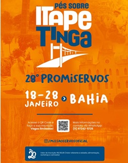 28º PROMISERVOS – “PÉS SOBRE ITAPETINGA”, DE 18 A 28 DE JANEIRO. PARTICIPE!