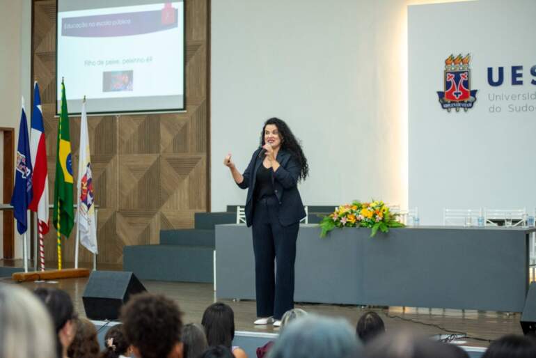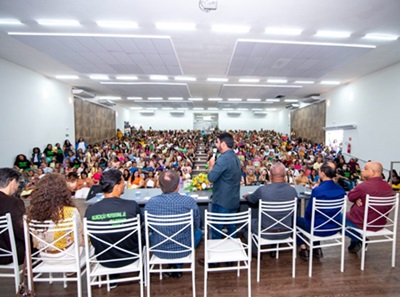 Nesta quinta-feira, 15/02, os profissionais da rede municipal de ensino reuniram-se do auditório da Uesb para darem início a mais um ano letivo. O tema ‘‘Alfabetização e Letramento, responsabilidade de todos’’ foi escolhido pensando que não se constrói um município verdadeiramente educador sem formar estudantes com total domínio da leitura e da escrita e do entendimento sobre elas.
