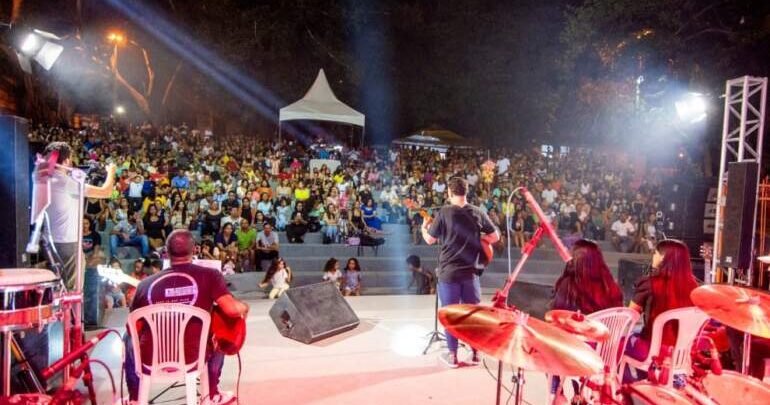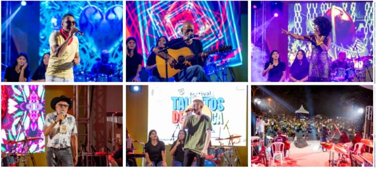 Mais uma edição do Festival de Talentos da Música que começa com muito sucesso. A primeira noite do Festival de 2024 contou com uma Concha Acústica Lotada, diversidade de gêneros musicais e muito ritmo. Vinte cantores se revezaram apresentando músicas populares e gospel e grandes sucessos que fizeram o público cantar junto. A categoria Kids abriu o evento. Cinco crianças mostraram todo o seu potencial e carisma, encantaram a todos e levantaram a torcida.