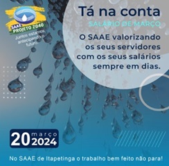 SAAE de Itapetinga antecipa pagamento do salário do mês de março