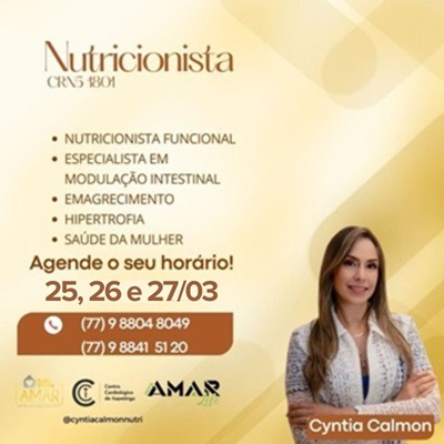 MAIS UMA VEZ, A CLÍNICA AMAR LIFE TRAZ PARA ITAPETINGA E REGIÃO A ESPECIALISTA EM NUTRIÇÃO Dra. CYNTIA CALMON