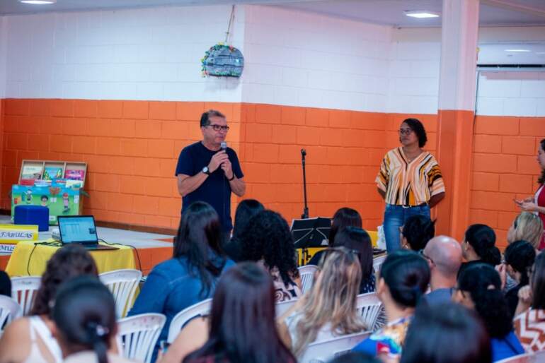 Nesta terça-feira, 11, a secretaria de educação realizou um encontro com professores da educação infantil para debaterem a oralidade, ludicidade e escrita. O encontro é uma das ações que serão realizadas para buscar o cumprimento do compromisso nacional Criança Alfabetizada.