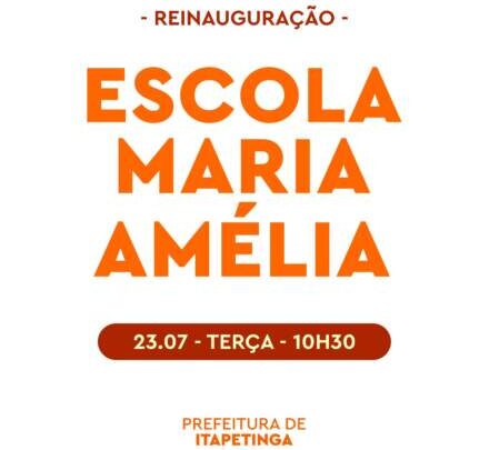 Com esse pensamento, será entregue mais um equipamento que irá beneficiar nossa comunidade. Nessa terça-feira, 23/07, às 10h30, será reinaugurada a Escola Maria Amélia, no bairro Nova Itapetinga.