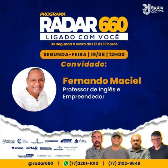 Hoje, por exemplo, tem uma entrevista com o Sr. Fernando Maciel (Professor de inglês e empreendedor). A entrevista promete muito, pois serão explorados vários assuntos e o entrevistado promete responder a todos os questionamentos.