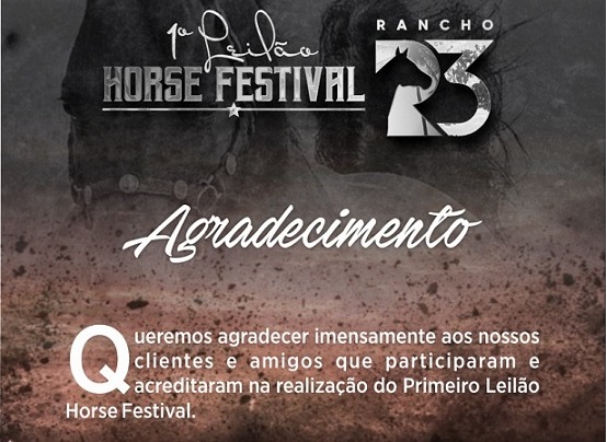 Após uma realização de alta qualidade, contemplada com ótimos negócios efetuados e traduzindo o padrão do trabalho daqueles que o organizaram, o Rancho R3 divulgou uma nota de agradecimento aos clientes e amigos que acreditaram, confiaram, naquele que foi o primeiro de muitos outros que virão, certamente todos dentro desse mesmo modelo.