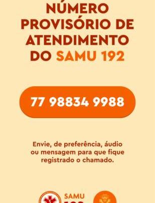 O Serviço de Atendimento Móvel de Urgência (SAMU) de Itapetinga está atendendo em novo número (77) 98834-9988. Envie, de preferência, áudio ou mensagem para que fique registrado o chamado.