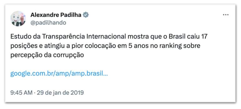 “Especialistas do mundo todo dizem, há mais de uma década que o termômetro do Índice de Percepção da Corrupção tem problemas. Essas críticas precisam ser levadas a sério e debatidas. Um termômetro desregulado leva a diagnósticos equivocados”, escreveu Vinicius Carvalho na época.