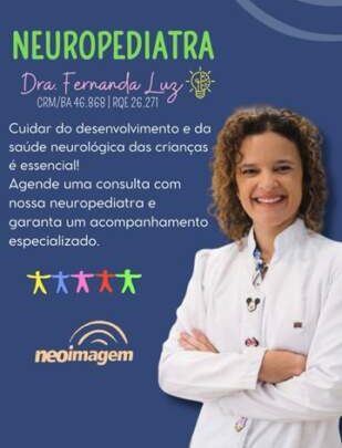 Dra. FERNANDA LUZ, EXCELÊNCIA EM NEUROPEDIATRIA, ATENDERÁ NO DIA 28/03 NA CLÍNICA NEOIMAGEM EM ITAPETINGA