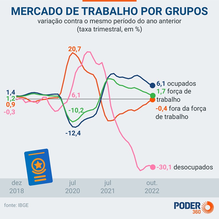 Os dados fazem parte da Pnad Contínua (Pesquisa Nacional por Amostra de Domicílios Contínua). O documento mostrou indicadores mensais produzidos com informações do trimestre móvel terminado em outubro de 2022.