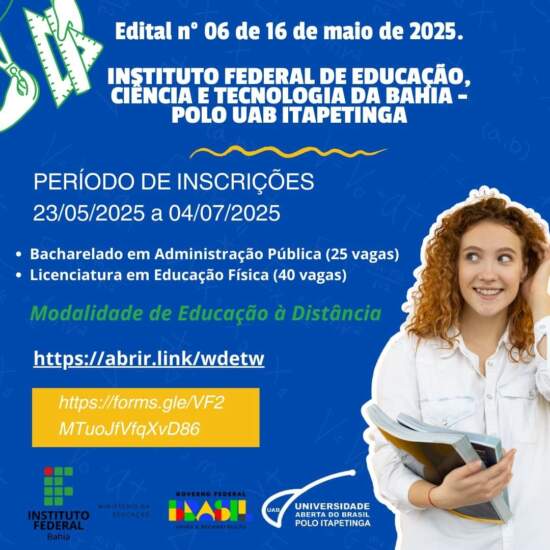 SAIU O NOVO EDITAL DE SELEÇÃO PARA DOIS CURSOS AQUI NO POLO UAB : ADMINISTRAÇÃO PÚBLICA E LICENCIATURA EM EDUCAÇÃO FÍSICA