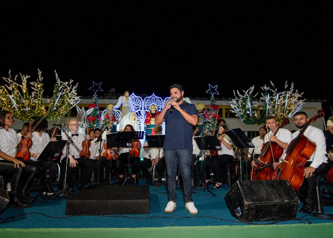 Itapetinga recebeu, como parte das celebrações dos 70 anos de emancipação política, uma bonita programação cultural natalina. À frente do presépio gigante instalado no Paço Municipal, a Fundação Coral Canto das Artes, liderado pela Maestrina Leniza Santos, apresentou um bonito repertório que celebra a data mais importante para os cristãos. Em seguida, um show do nosso artista, Juá da Bahia, trouxe ainda mais alegria e animação à praça iluminada e embelezada pelo encanto da decoração de Natal.