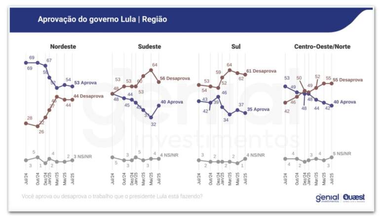 O maior foco de rejeição está justamente na região Sudeste, que concentra cerca de 42% do eleitorado nacional. Composta por estados como São Paulo, Minas Gerais, Rio de Janeiro e Espírito Santo — todos com governos alinhados à oposição — a região tem se mostrado cada vez mais crítica à condução do governo federal. A desaprovação na região já é considerada decisiva para os rumos da eleição de 2026.