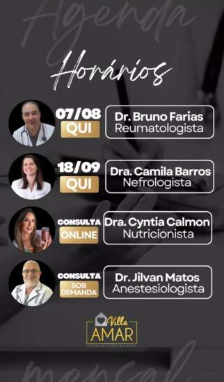 Agora oferecendo serviços de reumatologista, nefrologista, nutricionista e anestesiologista