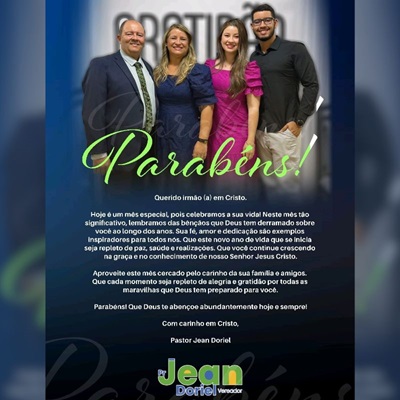 VEREADOR Pr. JEAN DORIEL PARABENIZA O ANIVERSARIANTE DO DIA: DUDU HAGGE