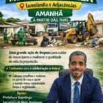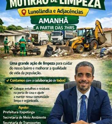 Com o objetivo de melhorar as condições urbanas e promover mais saúde pública, a Prefeitura de Itapetinga realizou um amplo mutirão de limpeza nos bairros Lunolândia e adjacências. A ação contou com a participação ativa do vereador Anderson, que acompanhou os trabalhos ao lado das equipes operacionais do município.