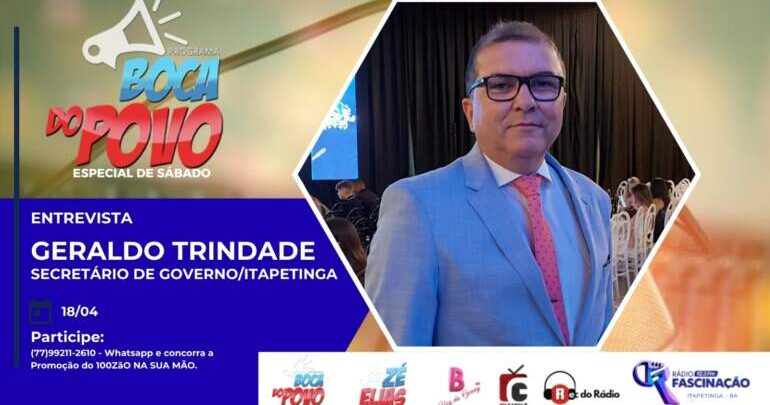 Em entrevista concedida ao programa Na Boca do Povo – Especial de Sábado, apresentado por Zé Elias, Bonne Cordeiro e Gilson Vasconcelos, da TV Catolé, o secretário de Governo de Itapetinga, Geraldo Trindade, falou sobre temas centrais da administração municipal e confirmou uma das notícias mais aguardadas pela população: vai ter São João em Itapetinga em 2026.