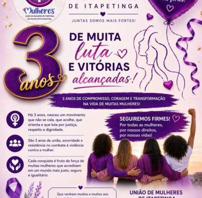 A celebração dos três anos da União de Mulheres de Itapetinga é mais do que um marco simbólico, é a confirmação de um trabalho sólido, construído com coragem, empatia e determinação. Em Itapetinga, o grupo se consolidou como uma verdadeira força feminina, promovendo acolhimento, orientação e enfrentamento às diversas formas de violência contra a mulher.